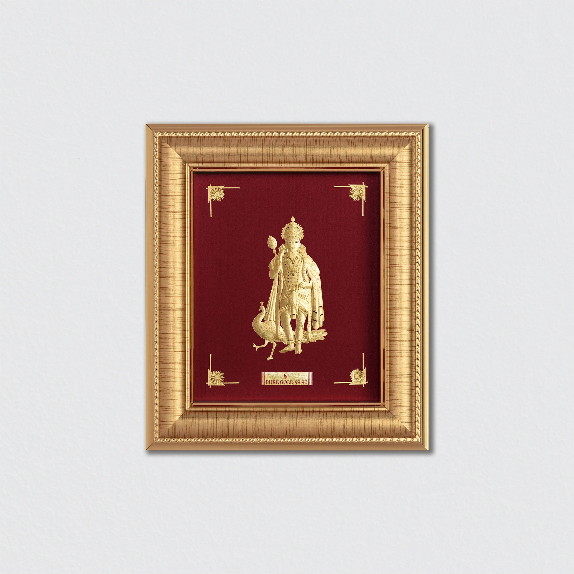 Bring home the blessings of Lord Murugan, the divine warrior and remover of obstacles, with this handcrafted 24K gold artwork. Known as the God of Courage, Victory, and Wisdom, Murugan is especially worshipped in South India as the protector who grants strength, success, and spiritual growth.